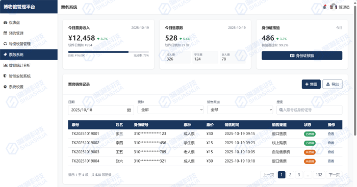 围绕文化传播与客流管控需求,提供线上线下一体化预约系统(分时段预约、团体讲解预约)、RFID智能导览设备(AR眼镜、语音导览笔)。票务系统集成身份证核验,对接公安系统实现实名制管理。数据中台统计参观人次、热门展品停留时长,辅助展览策划;智能安防系统联动视频监控,识别异常行为并预警。