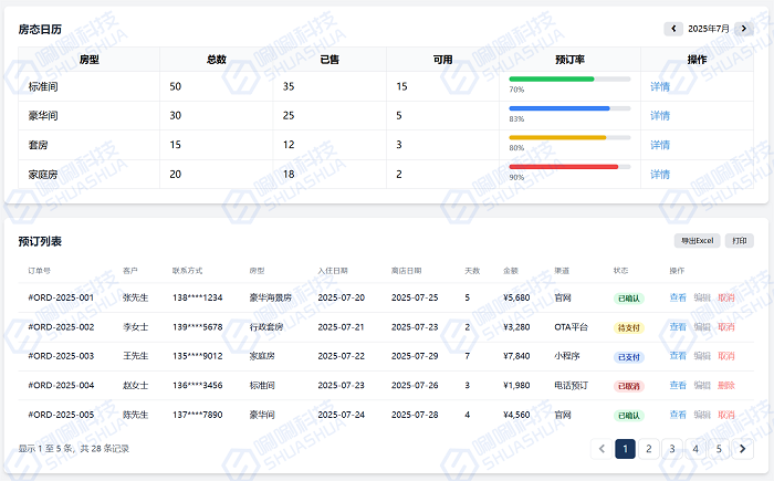 面向综合性度假村打造“一码通行”生态,整合住宿、餐饮、景点票务系统,支持多渠道预订(官网、小程序、OTA)。核心功能包括会员一卡通(积分兑换、权益管理)、智能导览(VR预览房型、AR导览路线),以及应急指挥平台(安防监控、客流疏散调度)。数据中台打通客房入住率、娱乐项目消费等数据,生成运营看板。