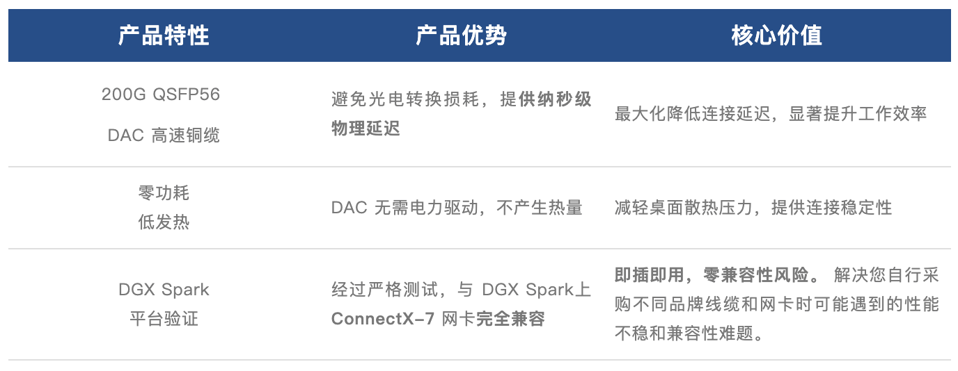 超擎数智专为DGX Spark/HPC场景设计了高品质200G DAC高速铜缆,确保您的并行计算真正实现“算力直达”,完美平衡性能与成本。