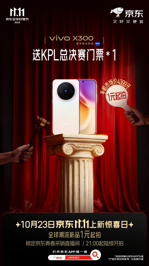 京东11.11火热进行中,10月23日京东11.11上新惊喜日带来全球潮流新品1元起拍,如vivo X300、OPPO Find X9、荣耀Magic8、iQOO 15等大牌手机旗舰新品全部1元开拍,还加赠英雄联盟S15总决赛门票、KPL总决赛门票、谢霆锋签名照等权益。感兴趣的消费者到京东APP搜索“京东拍卖”即可进入活动页面,预约感兴趣的新品,提交保证金即可参与预约!10月23日21点锁定京东青春采销直播间,大牌手机旗舰新品陆续开拍。