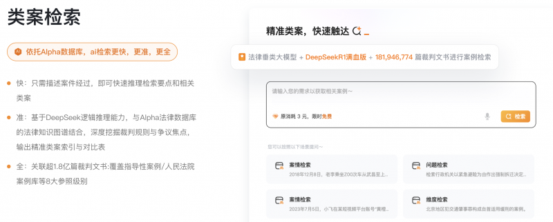 高效的法律检索首先需要坚实的信息支撑,AlphaGPT所依托的Alpha系统数据库,堪称一座实时更新的“法律信息富矿”。这座“富矿”收纳了超1.81亿件司法案例与560万余条法律法规,更以每日新增10万条以上信息的速度持续扩容。从刚发布的司法解释到历经岁月沉淀的经典判例,从部门规章到地方性法规,全域覆盖的信息网络与实时更新的动态机制,彻底攻克了法律从业者长期面临的“找不全、找不准、找不新”难题,为每一次检索提供扎实可靠的数据支撑。