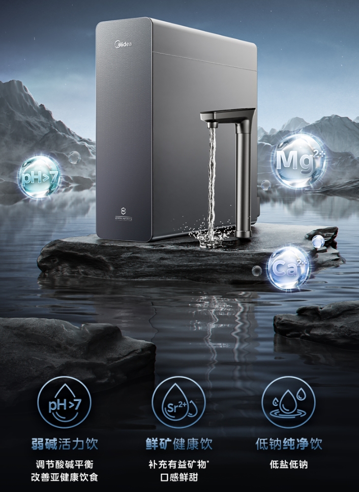 为满足母婴群体对于健康饮水的需求,美的创新研发0添加弱碱还原技术、0阻垢剂高脱盐帕斯卡膜等科技,打造能产出弱碱水、鲜矿水和纯净水三种水质的飞瀑弱碱净水器,为家庭饮水健康提供了新选择。