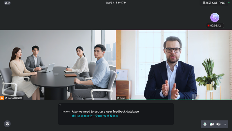 系统能够自动识别发言者的语言,并实时翻译成与会者选择的语言,打破语言障碍,实现真正的“母语级”沟通体验。