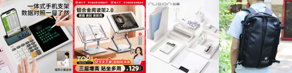 常用办公工具的升级,能直接提升工作效率与舒适度。SHENWING二合一计算器,结合计算功能与手写板,专业高效,让计算过程与结果记录同步完成,工作更便捷。原价129元,现价109元。猫太子可升降电脑支架,支持三层高度调节,适用于床上、沙发、桌面等多种场景,站坐皆宜,使用不受限。原价124元,现价112元。一个整洁有序的桌面,是高效工作和愉悦心情的开始。纽赛办公套装13件套主打DIY趣味桌面整理,内含文件盘、胶带座、订书机等13样实用装备,可自主搭配,能有效归类杂物;原价349元,现优惠价269元。北大文创大容量电脑包,秉承简约克制的美学理念,设计实用大方,轻松容纳笔记本电脑及其他日常用品,点亮通勤生活。原价180元,现价168元。