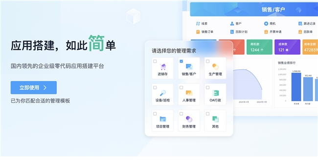 帆软旗下零代码aPaaS产品,帮助各行业人员快速搭建个性化的CRM,ERP,供应链等系统.包含表单,流程,自定义报表,外部互联等功能.多年服务沉淀,180W+企业组织选择.