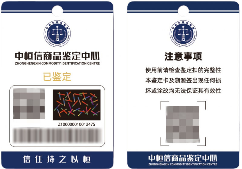选择实物鉴定的消费者,在收到经由中恒信鉴定并附有溯源签的商品后,可以扫描二维码查看详细鉴定结果。为强化溯源签防伪能力,中恒信采用双层防伪技术及动态镭射防伪标签,通过实时解析镭射反光变化,确保每一件商品的溯源信息真实、唯一。