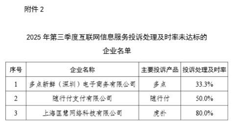 在互联网信息服务投诉方面,2025年第三季度,互联网信息服务投诉平台收到的互联网用户投诉中,服务功能类投诉占比47.2%,客服渠道类投诉占比18.2%,个人信息保护类投诉占比17.9%,其他类投诉占比16.7%。在接入平台的178家互联网企业中,多点等3家企业投诉处理及时率较低,工信部已督促相关企业妥善处理用户反映的问题。