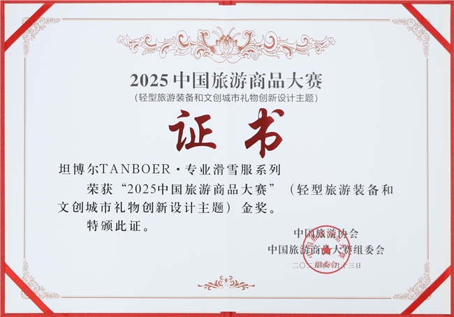 坦博尔专业滑雪服系列荣获2025中国旅游商品大赛金奖