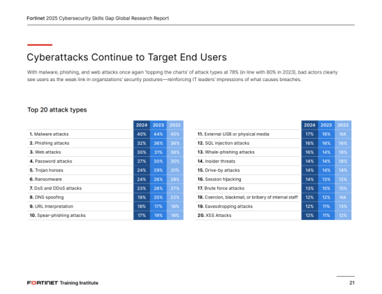 近日,专注推动网络与安全融合的全球性综合网络安全解决方案供应商Fortinet,发布《2025 年全球网络安全技能差距研究报告》。该报告基于对来自29个不同国家和地区的1,850多名IT及网络安全决策者的调查,覆盖制造业和金融服务等多个行业。