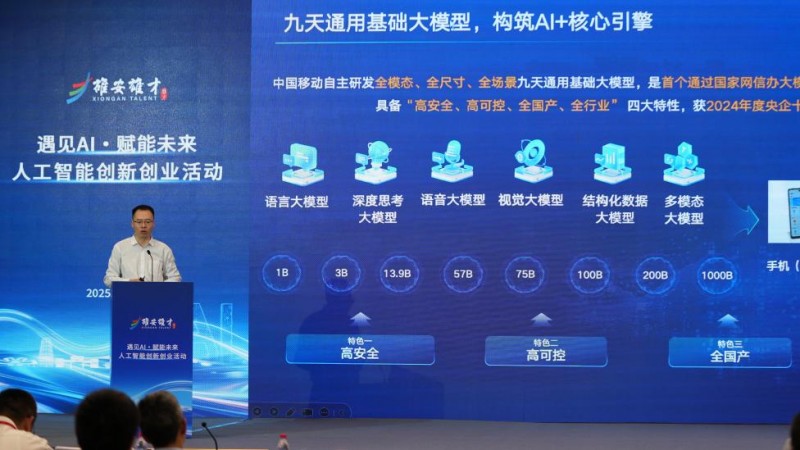 10月27日,由雄安新区党群工作部、中国雄安集团城市发展投资有限公司、中国移动通信集团政企事业部(雄安办)联合主办的“遇见AI,赋能未来”人工智能创新创业交流会,在雄安会展中心举办。本次活动作为雄安新区汇聚人工智能领域创新要素的重要平台,成功吸引了众多来自学界、业界及科研机构人工智能领域权威专家与精英代表齐聚一堂,实地考察雄安新区城市规划建设进展与人工智能产业发展成效,并就人工智能创新实践前沿主题展开交流互动,分享该领域从创意萌发、技术攻关到产业落地的全链条创新理念与实操路径,共同为“未来之城”的高质量发展出谋划策、注入强劲智慧动能。雄安新区党工委副书记、管委会副主任罗之芹,中国移动通信集团雄安新区办公室副主任贾文涛出席活动并致辞。