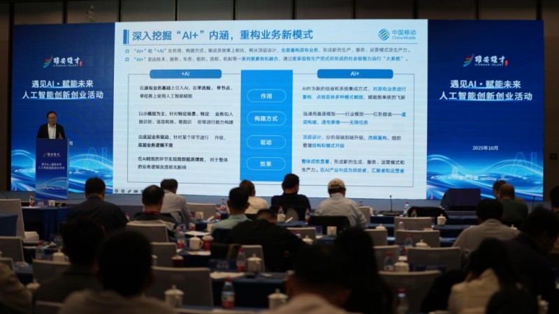 图为《中国移动“AI+”能力与实践》主题演讲