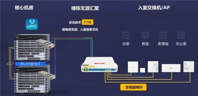 目前,锐捷的以太彩光方案已经在教育、医疗、政府、制造等多个行业数千个客户实践中得到了广泛的验证和认可,累计接入房间数超过35W+。