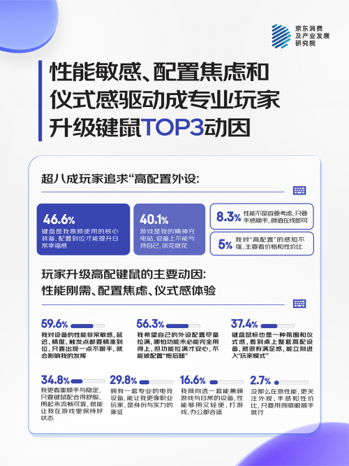 京东调研:舒适、性能提升、外观成大众键鼠换新TOP3动因,超8成游戏用户追求“高配置“