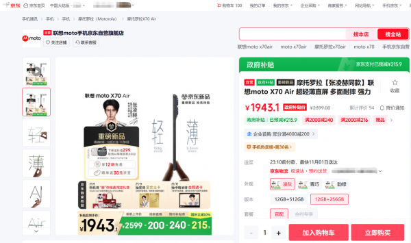 想要换新联想moto X70 Air,那就快来京东11.11先人一步下单吧。