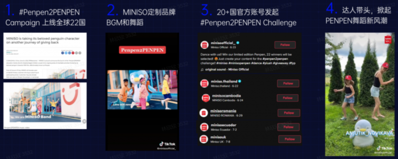 在与钛动科技的合作中,双方于2022年底围绕名创优品原创IP"PENPEN"展开了全球整合营销活动。钛动科技作为主导代理商,制定了完整的活动创意及传播策略,统筹在22个国家的门店同步落地。活动期间,TikTok话题观看量超700万,Instagram话题点赞量超过10万,显著提升了消费者对品牌的喜爱度及忠诚度。