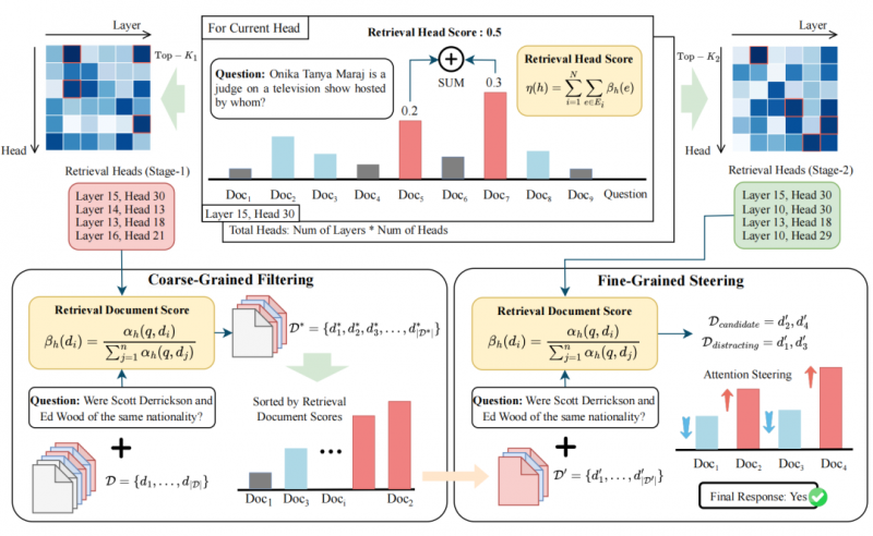 九章云极《CAFE》这篇论文,解决的就是这个问题。它没有采用复杂的外部处理模块,而是深入模型内部,利用 Transformer 架构中那些天然擅长信息检索的“注意力头”,作为智能体内部的“侦察兵”。通过一个“粗筛”和“精读”的两步策略,帮助智能体在信息海洋中快速定位关键证据。这本质上,是用一种巧妙的机制设计,优化了强化学习中至关重要的“感知”(Perception)环节。一个能快速看清问题本质的智能体,才有可能做出正确的决策,从而极大提升后续强化学习的训练效率。