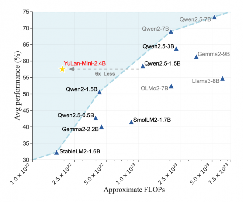 现在很多团队做模型,有点像在造肌肉车,简单粗暴地堆大排量。九章云极的一篇关于 YuLan-Mini 的研究,则是在尝试造一台 F1 赛车的引擎。参数量不大,只有 24 亿,但目标是逼近 70 亿参数模型的性能。