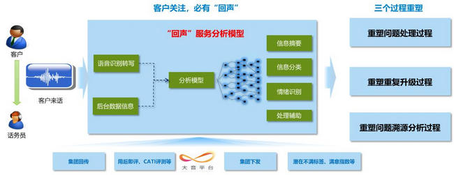 安徽移动依托集团聚智、大音等集约化平台,聚焦10086热线在客户问题解决过程中存在的服务效率不高、重复问题预警不全面、分类准确性不足等问题,依托客户来话、集团大音满意度评测、潜在不满识别标签、客户满意指数等客户数据,基于大小模型能力,打造“回声”服务分析模型,沉淀来话信息摘要、客户情绪识别、客户问题分类、典型场景辅助处理等能力,实现对客户首次问题处理、客户重复投诉升级、问题溯源分析三个过程的AI+重塑。