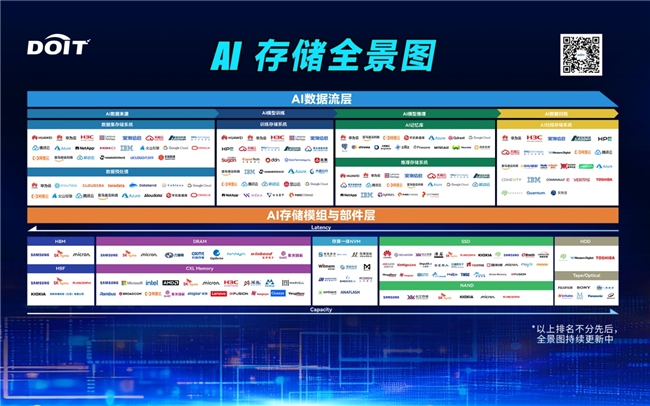 本届峰会的亮点之一,是历时数月编制的“2025 AI存储全景图”正式发布。该图谱涵盖AI存储系统及相关部件两大核心板块,旨在为行业提供一份清晰的技术导航与选型参考。