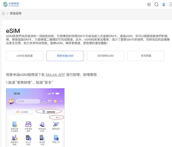此外,在传统eSIM激活服务中,即便是国内电信运营商在开展境外业务的过程中,同样以简化服务、提升便利性为卖点。例如中国移动香港的eSIM增值服务页面中显示“只需扫描二维码即可完成开通”,业务申请只需在MyLink APP进行办理,无需前往实体营业厅。