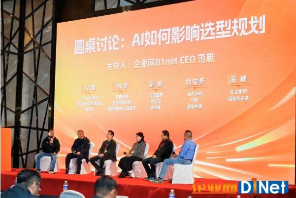 嘉宾分享之后,以“AI如何影响选型规划”为主题的圆桌讨论正式开始。讨论由企业网D1net CEO范脡主持,国机集团、广州汽车集团、江苏医药、恒力电机、红豆集团等企业的信息部高管参与了讨论。