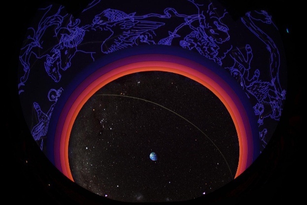 国立自然科学博物馆太空剧场的23米半球形穹幕上呈现的震撼画面深深吸引观众