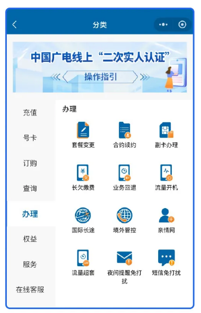 中国广电营业厅小程序:在小程序“办理”栏目中,点击“短信免打扰”。