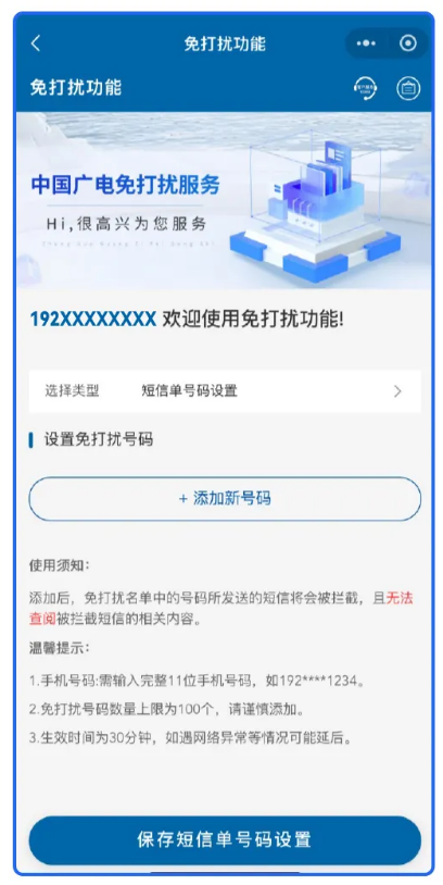中国广电 192 号段短信免打扰功能上线