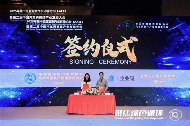 2025年10月21日-23日,由中国亚洲经济发展协会汽车再循环产业发展委员会(CARIDC)主办的2025年第十四届亚洲汽车环境论坛(AAEF)暨第二届中国汽车再循环产业发展大会(The 14th Asian Automotive Environmental Forum(AAEF) 2025 and the 2nd China Automotive Recycling Industry Development Conference)在中新生态城市、绿色发展示范区——中国天津成功举办。
