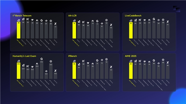通用任务能力提升:在各类高难度学科推理基准测试中表现显著提升,进一步贴近实际开发需求,AA-LCR(Long Context Reasoning)达到74%;Humanity's Last Exam 达到33.4%;AIME 2025 达到95%。