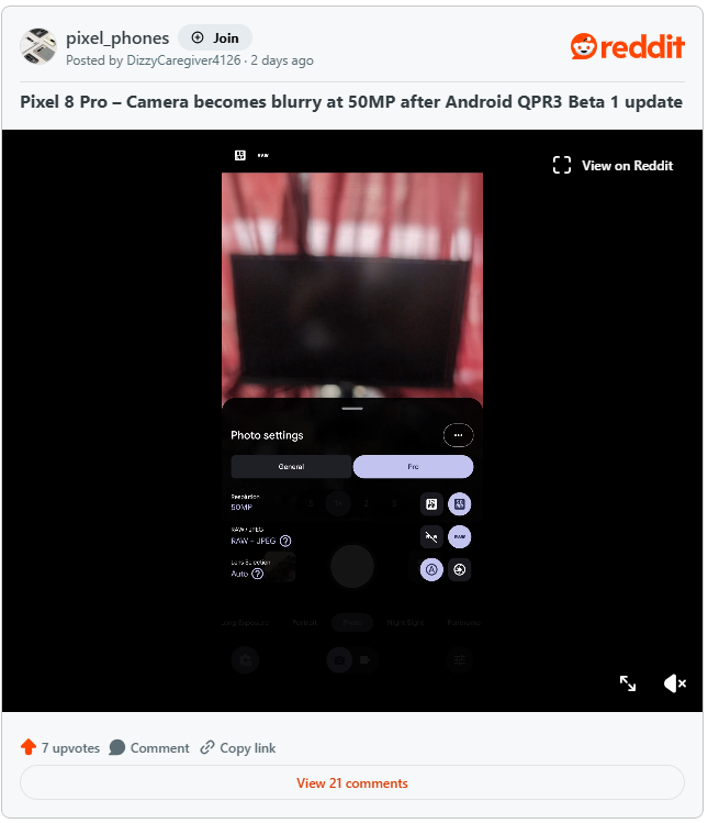 12 月 21 日消息,谷歌近期面向符合条件的设备推送了 Android 16 QPR3 Beta 1 版本更新,然而越来越多的用户反馈,此次更新引发了严重问题。具体来看,已有大量报告指出,谷歌 Pixel 系列手机在安装 Android 16 QPR3 Beta 1 固件后,出现了相机对焦故障。