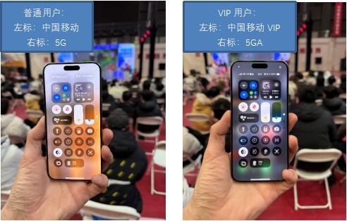 针对不同用户需求差异化配置资源,实现体验精准匹配:- VIP用户:通过5G-A 3CC多载波聚合技术,整合2.6G(100M)、2.6G(60M)、700M(30M)多频段资源,分配独享频率资源,同步通过AMPCF网元部署实现终端左上角显示“中国移动VIP服务”标识,专属权益直观可感,高清直播不卡顿、图文视频秒发送,极致网络体验拉满;- 参赛电竞选手:开通专属电竞套餐,通过游戏叠加包与智能板游戏时延优化,将游戏时延稳定控制在20ms,毫秒级超低时延彻底消除操作延迟干扰,确保选手每一次技能释放、战术沟通、指令响应精准同步,全力释放竞技实力,助力赛事公平有序开展。
