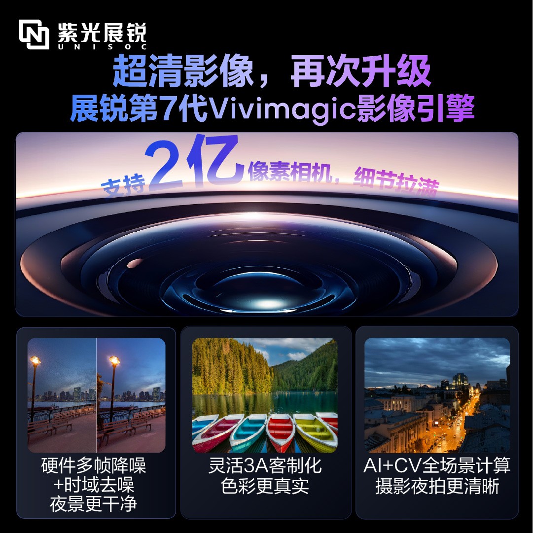 2、搭载展锐第7代Vivimagic影像引擎,升级2亿像素摄像头,影像效果全面提升;