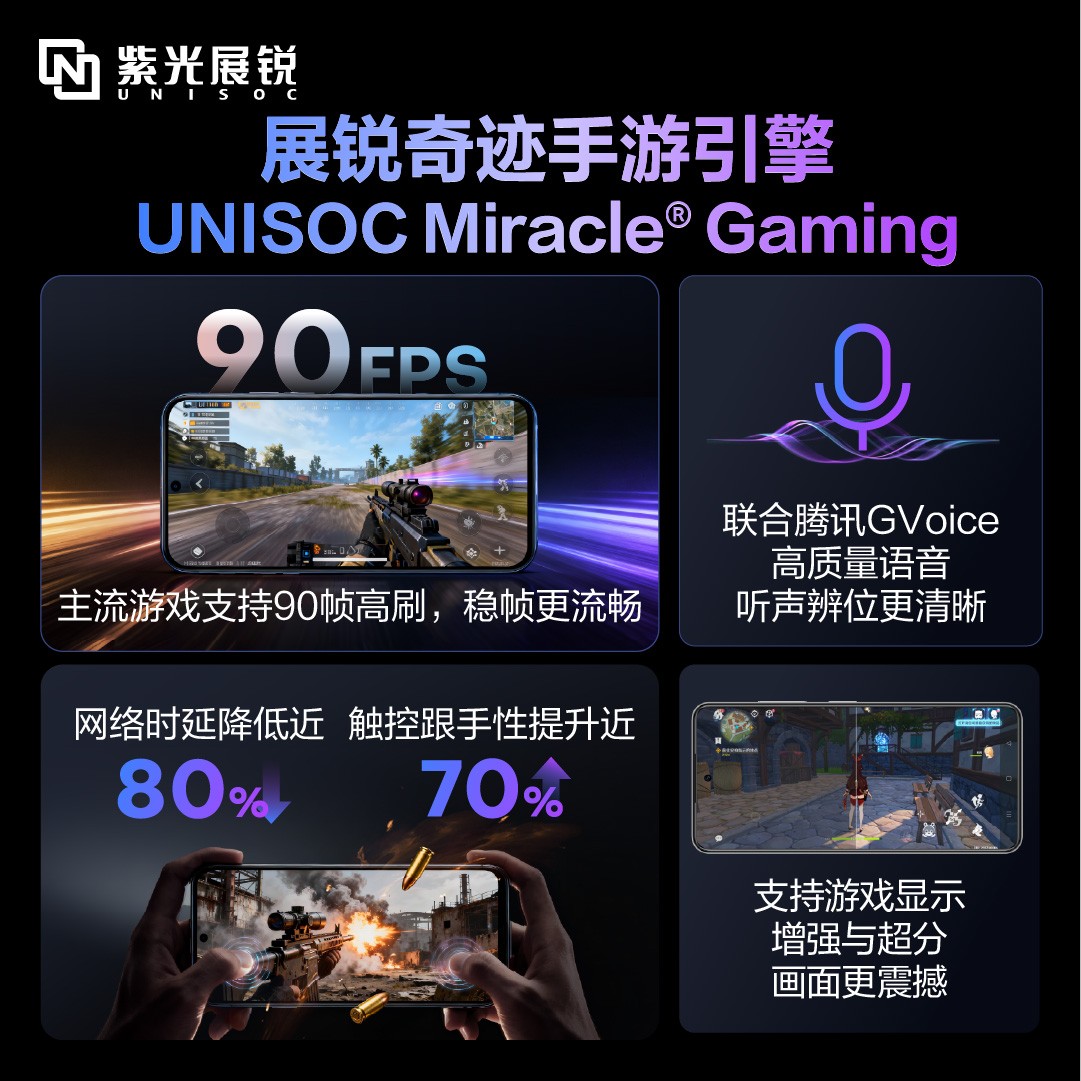 4、搭载UNISOC Miracle® Gaming手游引擎,为玩家提供轻旗舰级游戏体验;