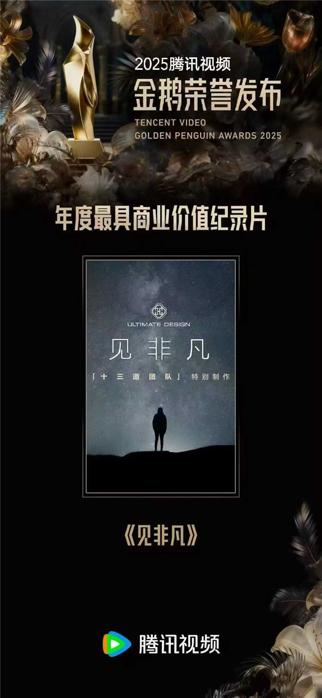 通过六期节目、六场对话,《见非凡》将“非凡”从遥不可及的标签,转化为一种可以被理解、被讨论的人生态度,让非凡在不同的人生路径中自然显形。节目自播出以来,狂揽超170次热搜热榜,相关话题阅读量突破14亿,#惠英红的非凡是苦难磨出的铠甲#、#梁家辉过了120种非凡的人生#、#汪顺教许知远游泳#等话题全网热议,被网友评价为“适合低谷期反复看的纪录片”,并荣获2025腾讯视频金鹅荣誉“年度最具商业价值纪录片”。