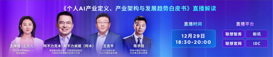 此外,联想还联合IDC率先发布《个人AI产业定义、产业架构与发展趋势白皮书》。在产业变革的大时代里,你可以在其中找到关于个人AI产业发展、大模型厂商的未来、智能体的个性化趋势等一些行业热点问题的答案,登录联想官网即可查看报告。