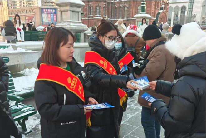 活动现场,哈尔滨移动市场经营部与道里分公司精心策划,组建了一支专业且热忱的反诈宣传团队。她们身着厚重的羽绒服,于索菲亚教堂、尚志大街等人流密集区域设置宣传点,通过发放反诈宣传手册、现场讲解典型案例、播放反诈宣传视频等多样形式,向游客和当地居民普及常见的通信诈骗手段及防范举措。