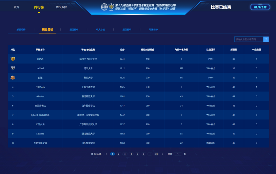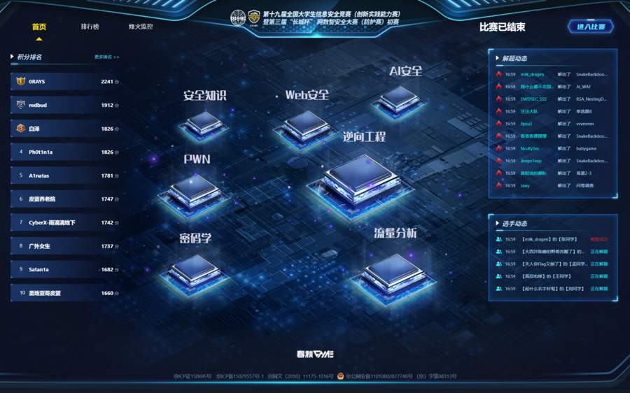 经过激烈角逐,来自杭州电子科技大学、清华大学、复旦大学、上海交通大学等高校共计600支队伍晋级半决赛。晋级名单将在赛事官方网站(http://www.ciscn.cn和http://ccb.itsec.gov.cn/)公布。