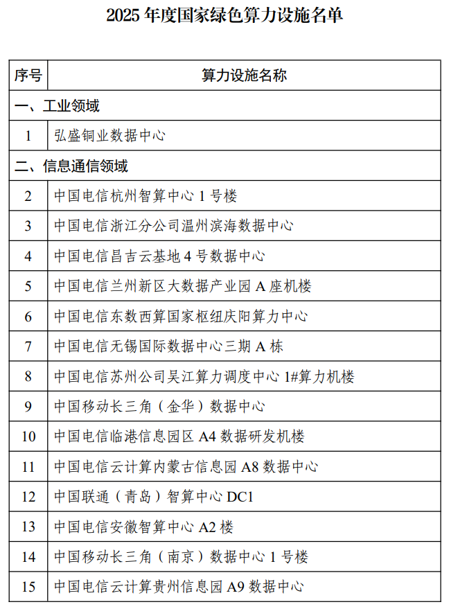 六部门公告《2025年度国家绿色算力设施名单》