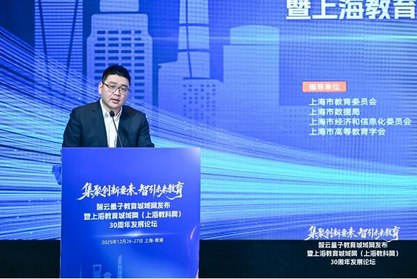 2025年12月26日,在智云量子教育城域网发布暨上海教育城域网三十周年发展论坛上,上海市数据局副局长翁轶丛、中国电信上海公司副总经理龚豪、上海市教育委员会信息化工作处处长韩崇虎、上海市大数据中心副主任王明政、上海市经济和信息化委员会人工智能发展处副处长陈钊共同启动“智云量子教育城域网”。