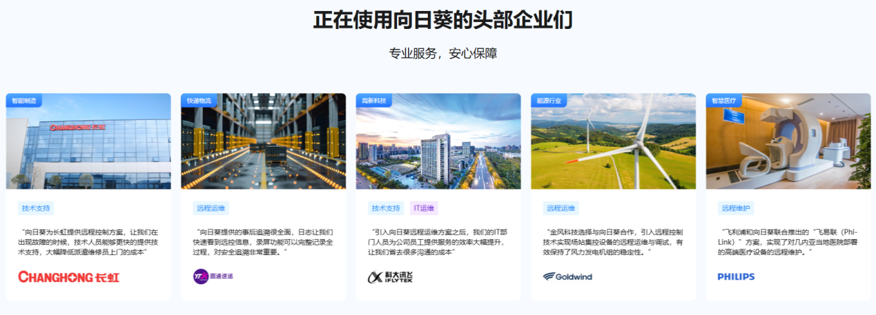 以上三个方面的痛点,正是企业搭建大量设备IT运维体系的关键,贝锐向日葵方案都提供了优质的解法,目前,该方案已经在诸多行业内被广泛投入使用,诸多头部企业通过向日葵IT运维解决方案实现高效的设备运维管理,成功降本增效。