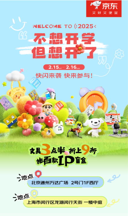 除了线上活动外,京东还特别为北京和上海的“谷圈人”们准备了线下惊喜。2月15日-2月16日,京东将在北京通州万达广场1F和上海闵行龙湖天街商区1F举办4场谷子快闪活动。现场不仅设有二次元谷子区、涂鸦区等互动区域,还有COSER巡游等精彩活动,为消费者带来一场专属的二次元狂欢。同时,现场还将展示IP趣味文具图书、AI机器狗、AI学习机、儿童手表、耳机、打印机等多种趣玩商品,让消费者亲身体验科技的魅力。活动现场与工作人员对接暗号“春天种下一粒谷 每天收获3点半”,还将有机会获得惊喜小礼物。北京、上海的“谷圈人”们,记得来一场线下的惊喜邂逅。