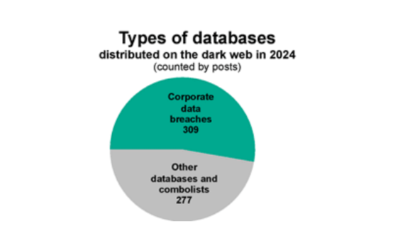 宣称的数据库泄露:2024年,网络罪犯发布了586则广告,宣称免费提供或出售数据库,53%涉及企业数据泄露,波及185家巴西机构。[1]根据网络犯罪分子在广告中声称的信息,政府实体、电信和专业服务机构受到的影响最大,这凸显了巴西企业亟需完善网络安全防护体系。