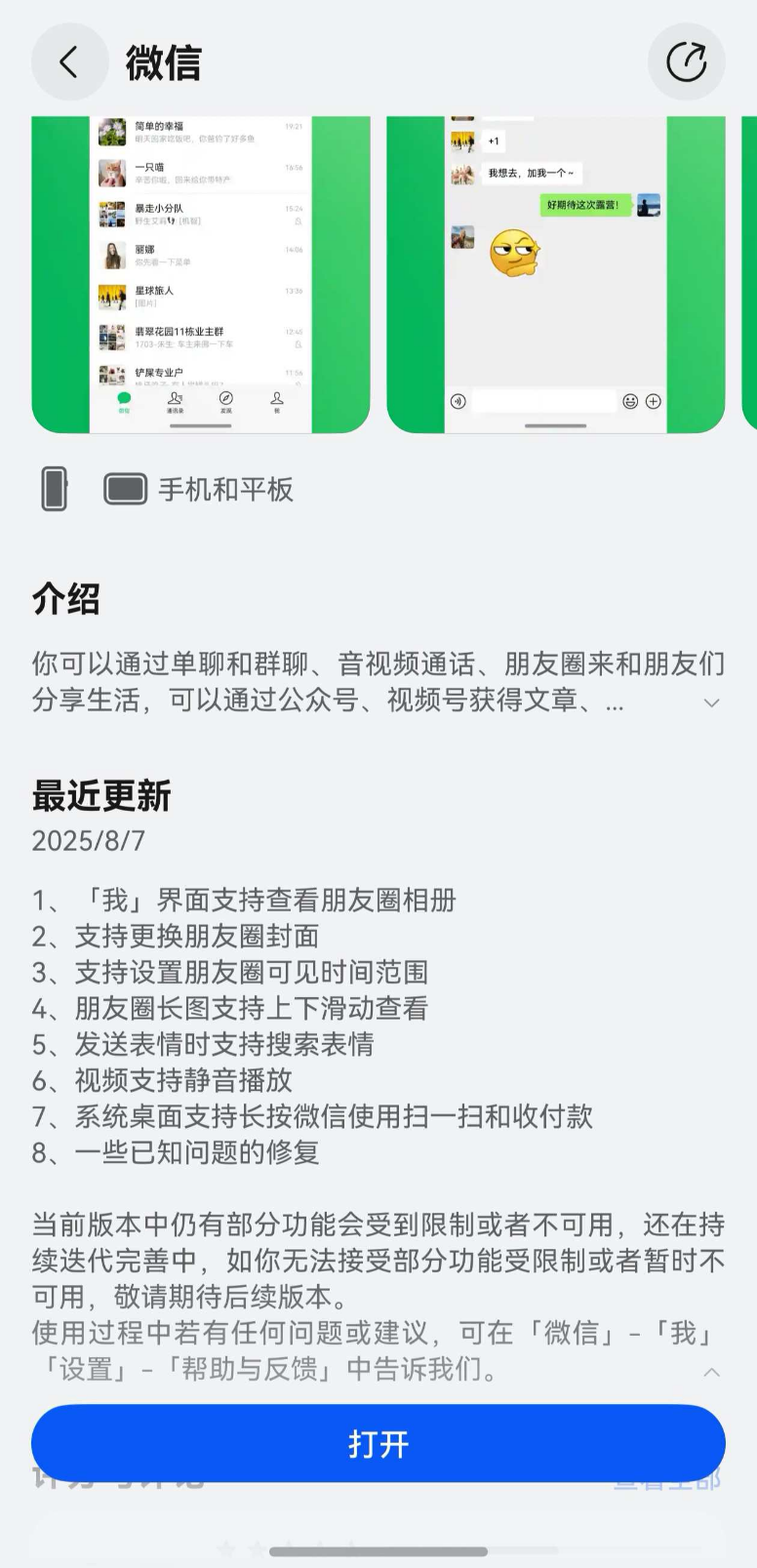 鸿蒙版微信更新近十项功能,可搜表情,聊天小窗,朋友圈更完善!