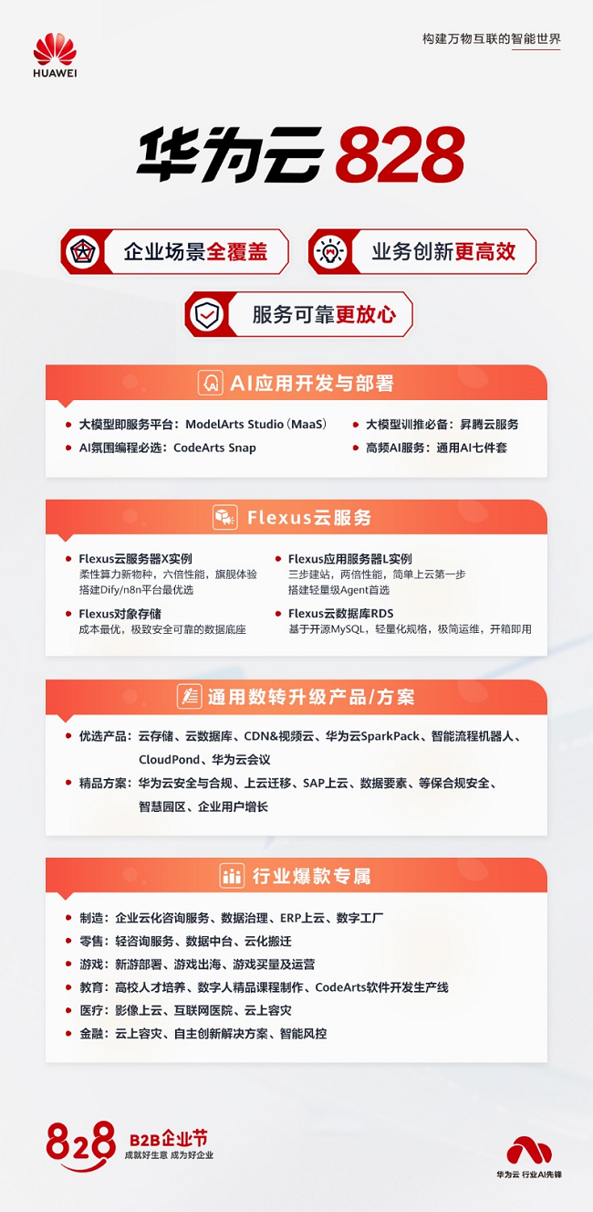 828 B2B 企业节,不只是一场行业盛会,更是华为云基于对各行业、各规模企业数字化需求的深刻洞察,打造的“需求-产品-服务”精准对接场。