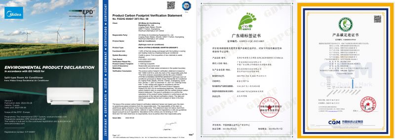 早在2022年,美的空调就率先发布了行业首个空调产品碳足迹+减碳量评估报告,全球首个空调环境产品声明(Environmental Product Declaration,EPD)。截至目前,美的空调已有5个品类、50余款重点机型获得权威第三方机构颁发的产品碳足迹证书。