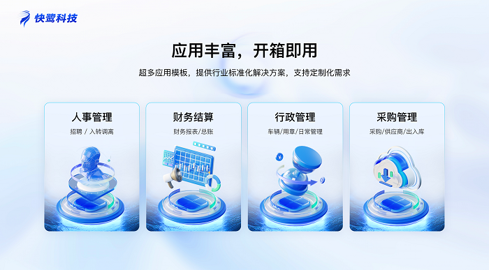 快鹭科技四大应用紧密协同,以 AI+低代码技术为核心驱动力,从人力、采购、行政、财务结算等多维度为企业数字化基建添砖加瓦。通过打通企业底层数据,实现各业务环节高效协同、数据实时共享,帮助企业降低管理成本、提升运营效率、优化决策质量,在激烈的市场竞争中抢占数字化高地,实现高质量可持续发展。选择快鹭科技,不仅是选择数字化工具,更是选择与企业共同成长的战略伙伴,从而选择的是一条高效、智能的企业数字化转型之路 。