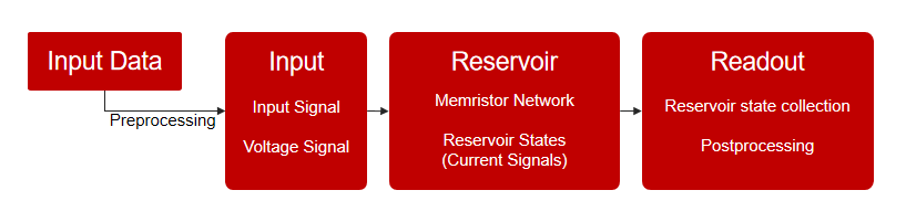 微算法科技(MLGO)MPVP虚拟仿真平台的组成部分包括预处理部分、输入部分、存储器部分和读出部分。在预处理步骤中,时间序列数据被转换为电压信号,随后输入到基于忆阻器网络的存储器中。存储器对输入信号的动态响应通过流经各个忆阻器的电流时间演变而获得。最终,通过可训练的输出权重矩阵,系统输出通过储层状态的集合和可选的后处理步骤转换为矩阵,以产生最终的模式识别结果。