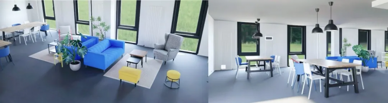 传统的办公室往往被隔间和固定工位填满,而我们的新空间打破了这种模式: