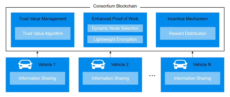 区块链技术以其去中心化、防篡改和可追溯性等特性,成为解决车联网信息共享信任问题的潜在途径。然而,车辆的高移动性和动态变化的网络拓扑结构,使得传统区块链的共识机制难以适应车联网环境,达成共识的效率和可靠性也成为制约其应用的瓶颈。